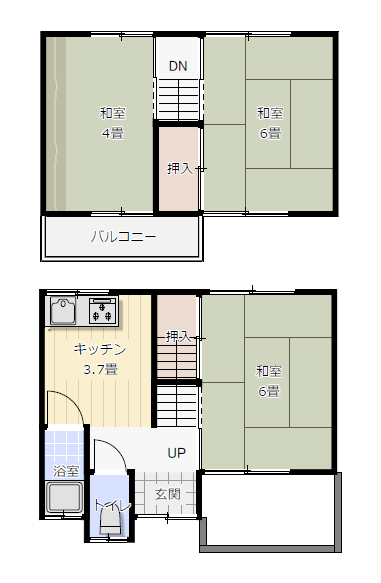 玄関を入るとDKと和室。